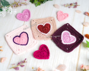 - Final heart measures to about 2.25″ x 2.25″ (this can vary depending on yarn you use and or tension)