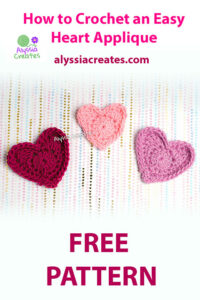 Let’s learn how to make a heart applique! The perfect quick and easy project for Valentines Day or for any other day/occasion! If you haven’t crocheted before, start with my beginner series to learn how to crochet!